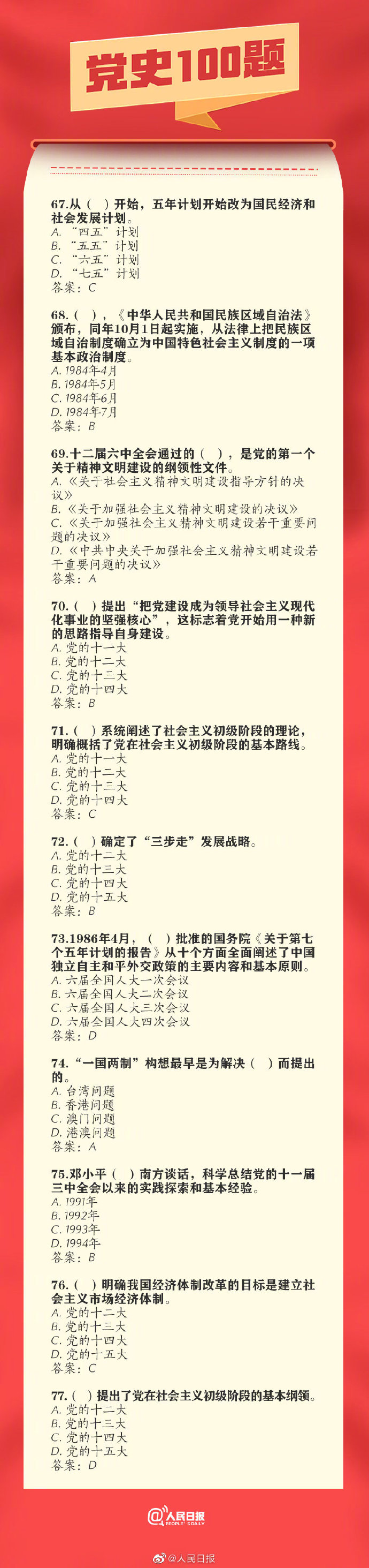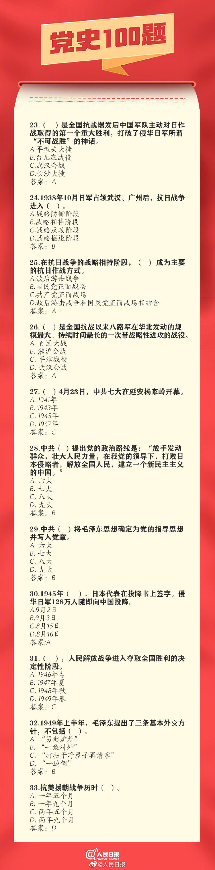 03-16 11:31:00閱讀()人民日?qǐng)?bào)【百年黨史100題,你會(huì)做幾道?】你知道出席中共一大的人員平均年齡是多少歲嗎?中共黨員是何時(shí)超過1000萬人的?我國的改革開放由哪次會(huì)議揭開序幕?……無論我們走得多遠(yuǎn),都不能忘記來時(shí)的路。100題重溫百年黨史,戳圖學(xué)習(xí)↓↓中國共產(chǎn)黨100周年,收藏!