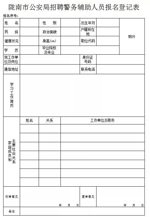 3、隴南市公安局招聘警務(wù)輔助人員報名登記表