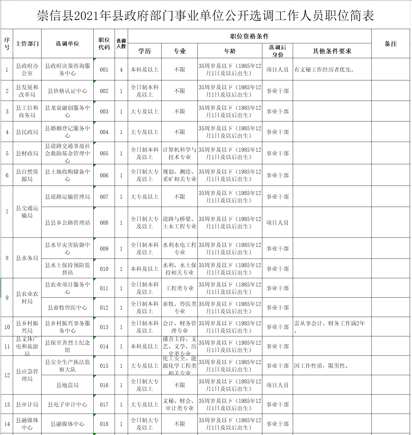附件:1.崇信縣2021年縣政府部門事業(yè)單位公開選調(diào)工作人員職位簡表