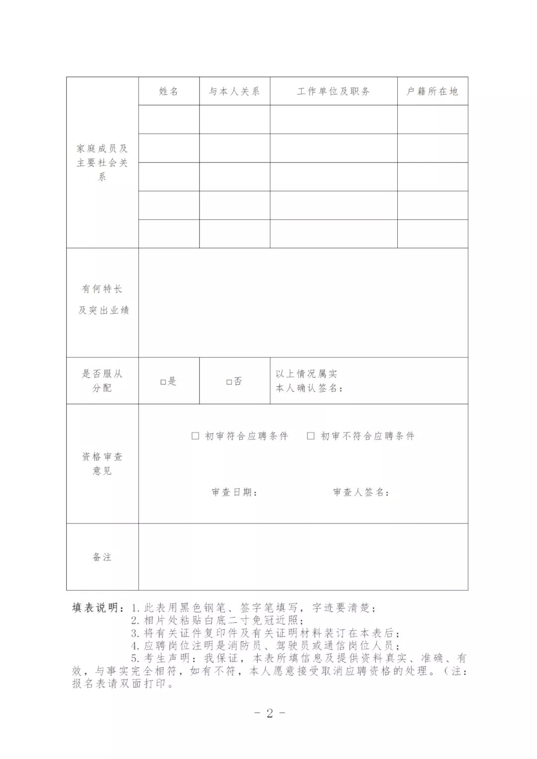 4、報(bào)名人員需提交以下材料:填寫《報(bào)名表登記表》一式兩份;高校畢業(yè)生持就業(yè)報(bào)到證、畢業(yè)證、身份證、戶口簿原件及復(fù)印件;退役士兵持退伍證、身份證、戶口本原件及復(fù)印件;有專業(yè)資質(zhì)或?qū)iT技能的需提供相關(guān)證件原件及復(fù)印件;已就業(yè)的需提供所在單位出具的同意報(bào)考證明;所有報(bào)考人員均需出具個(gè)人銀行征信報(bào)告及公安機(jī)關(guān)出具的個(gè)人及直系親屬有無(wú)違法違紀(jì)犯罪證明,另附近期正面免冠紅底二寸照片4張、48小時(shí)以內(nèi)核酸檢測(cè)證明及新冠疫苗注射證明。提交的報(bào)名材料須真實(shí)、準(zhǔn)確,一旦發(fā)現(xiàn)弄虛作假,直接取消報(bào)名資格。