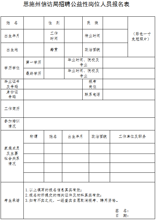 附件:恩施州信訪局招聘公益性崗位人員報(bào)名表