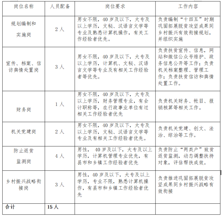 2021-02-01 22:33:25閱讀()襄陽市人力資源和社會(huì)保障局襄陽市人民政府扶貧開發(fā)辦公室現(xiàn)委托湖北為盛人力資源開發(fā)有限公司面向社會(huì)公開招聘相關(guān)崗位工作人員15名(崗位要求和工作內(nèi)容附后),現(xiàn)將具體事項(xiàng)公告如下: