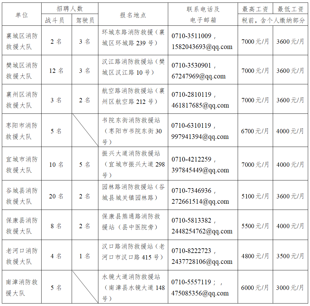2022年襄陽市消防救援支隊(duì)政府專職消防員招聘公告