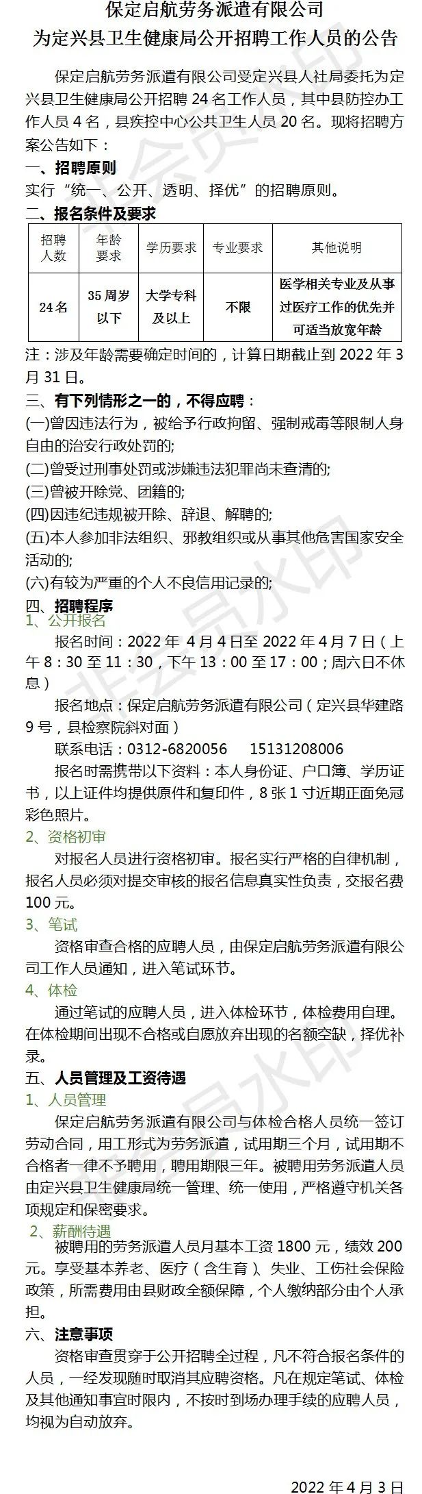 2022-04-06 00:10:45閱讀()保定公共招聘網(wǎng)2022年保定定興縣衛(wèi)生健康局公開招聘工作人員公告