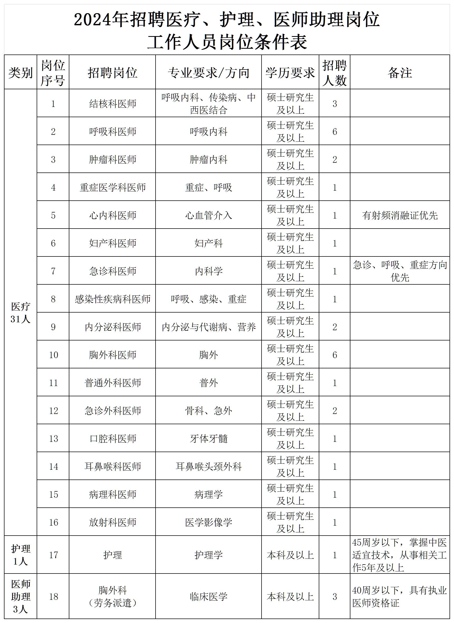 3.醫(yī)療崗需具備執(zhí)業(yè)醫(yī)師資格和住院醫(yī)師規(guī)范化培訓(xùn)資質(zhì)。
