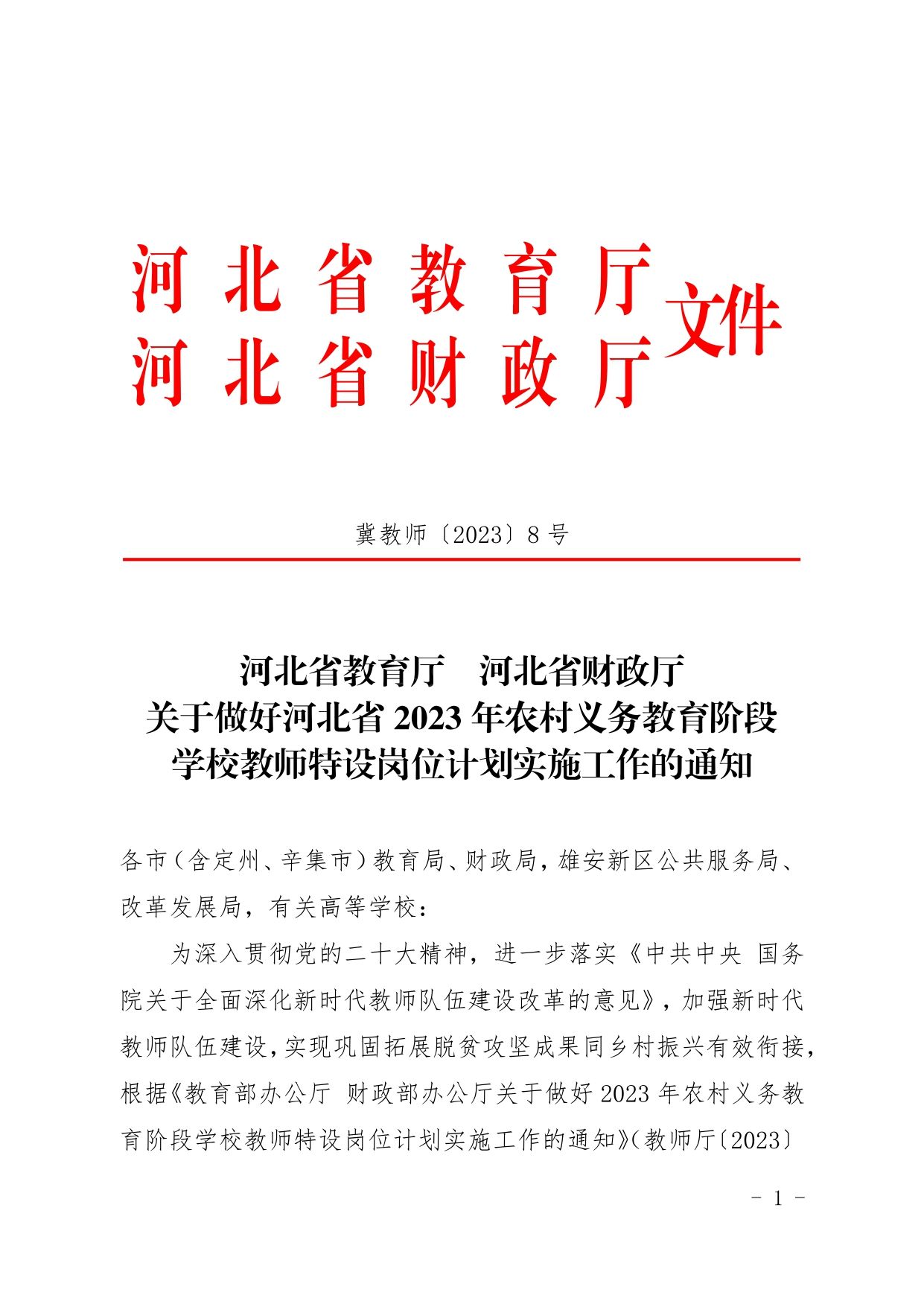 2023-06-19 17:01:32閱讀()河北特崗教師招聘服務(wù)平臺關(guān)于做好河北省2023年農(nóng)村義務(wù)教育階段學(xué)校教師特設(shè)崗位計劃實施工作的通知