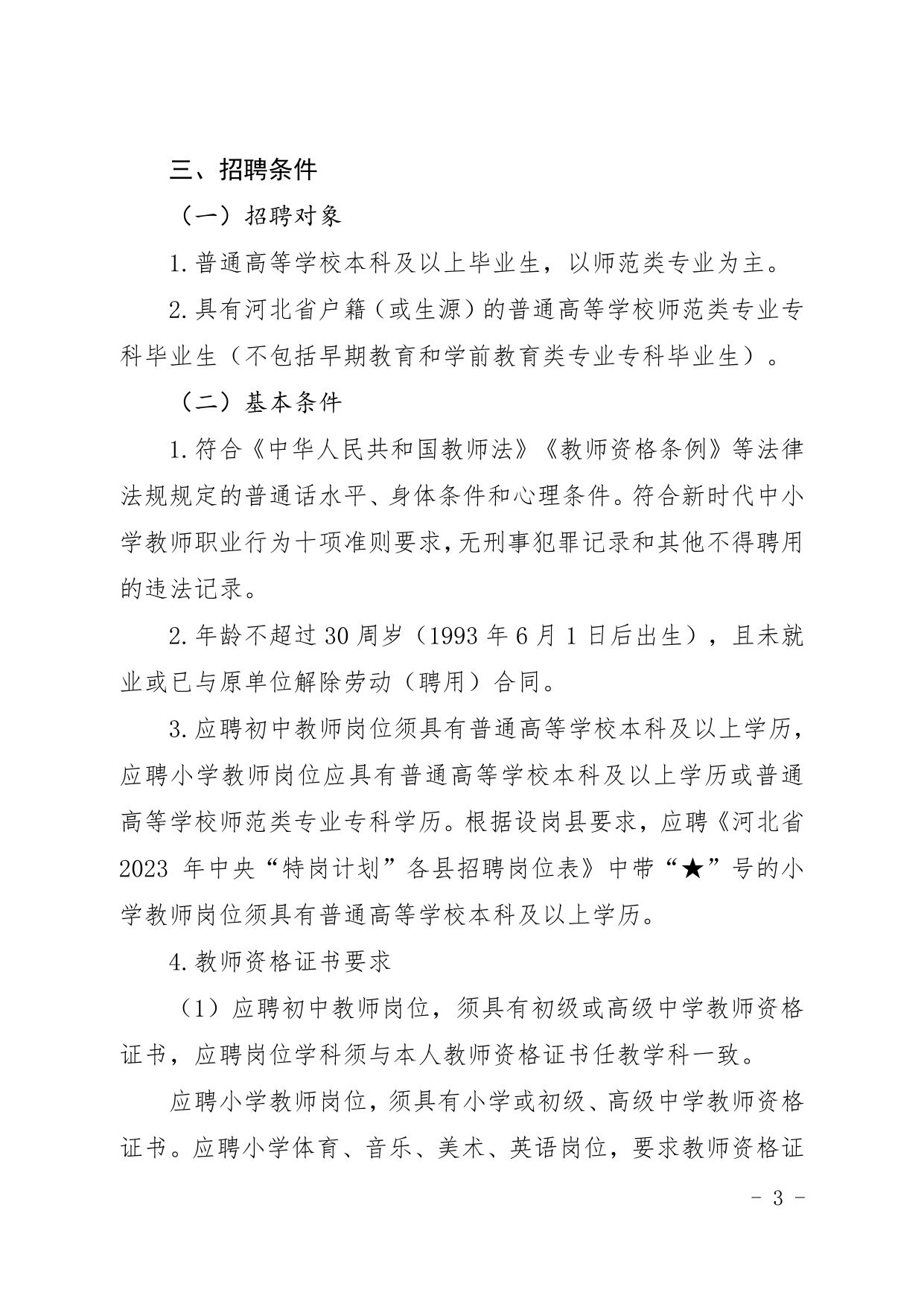 2023年河北省特崗教師招聘公告及崗位表