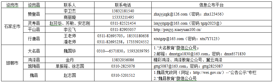 河北省2023年特崗教師招聘設(shè)崗縣聯(lián)系方式一覽表