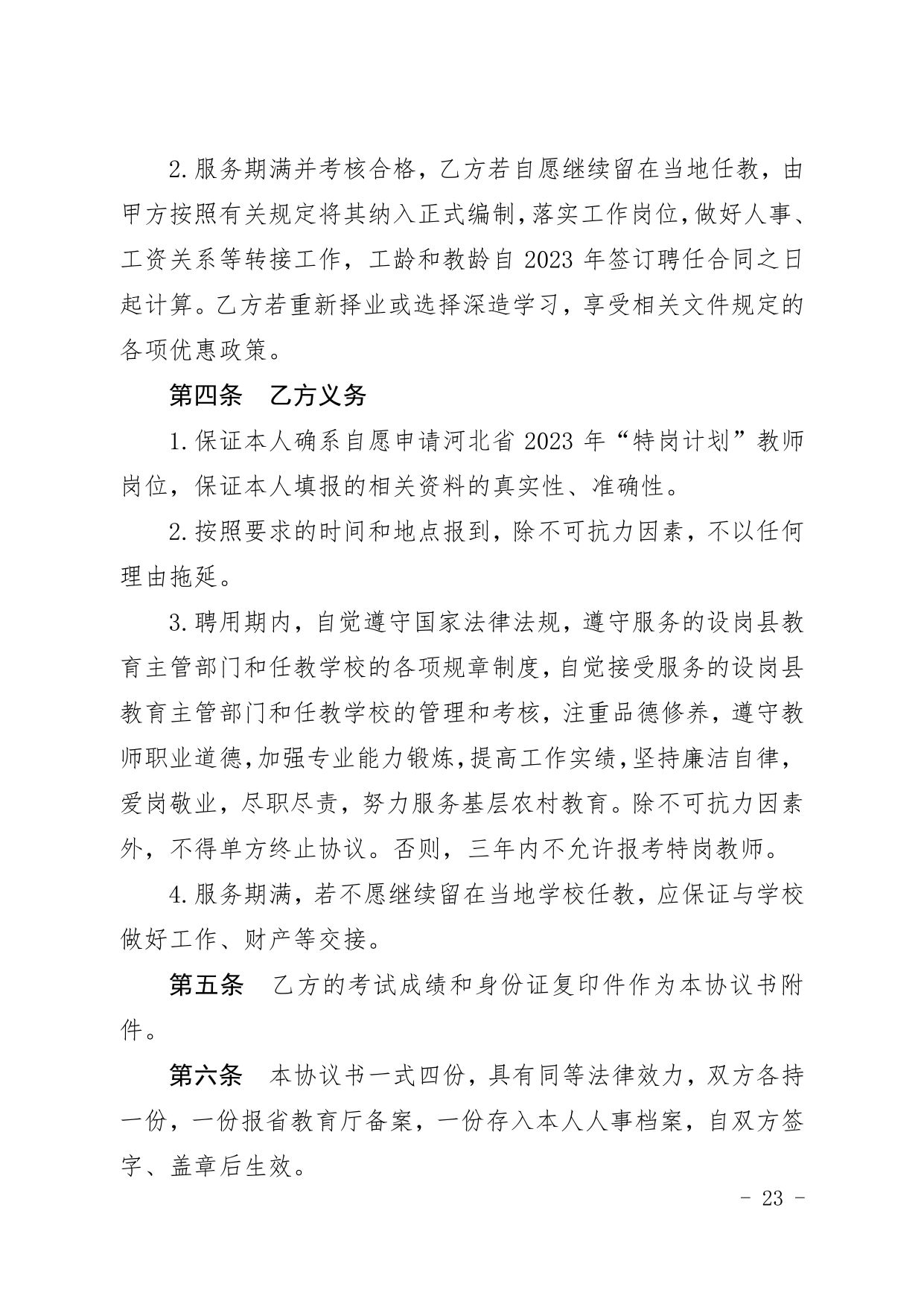 河北省2023年中央“特崗計劃”各縣招聘崗位表