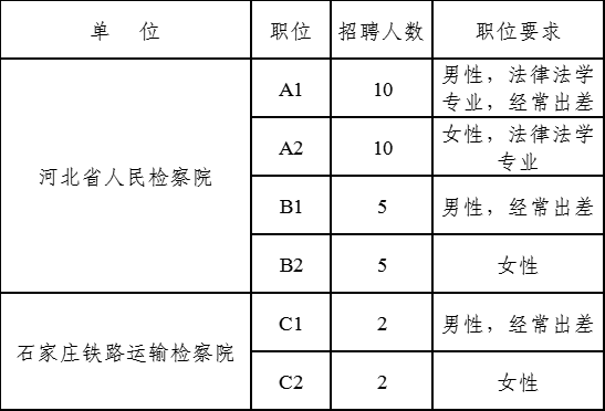 根據(jù)聘用制書記員職數(shù)核定情況,結(jié)合聘用制書記員隊伍梯次建設(shè)實際,河北省人民檢察院、石家莊鐵路運輸檢察院2023年度計劃招聘聘用制書記員34名,其中省院機關(guān)30名,石家莊鐵路運輸檢察院4名。具體職位如下: