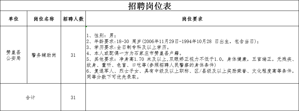 注:初審?fù)ㄟ^后請(qǐng)下載附件1《贊皇縣公安局警務(wù)輔助人員政審表》到戶籍所在地派出所蓋章。