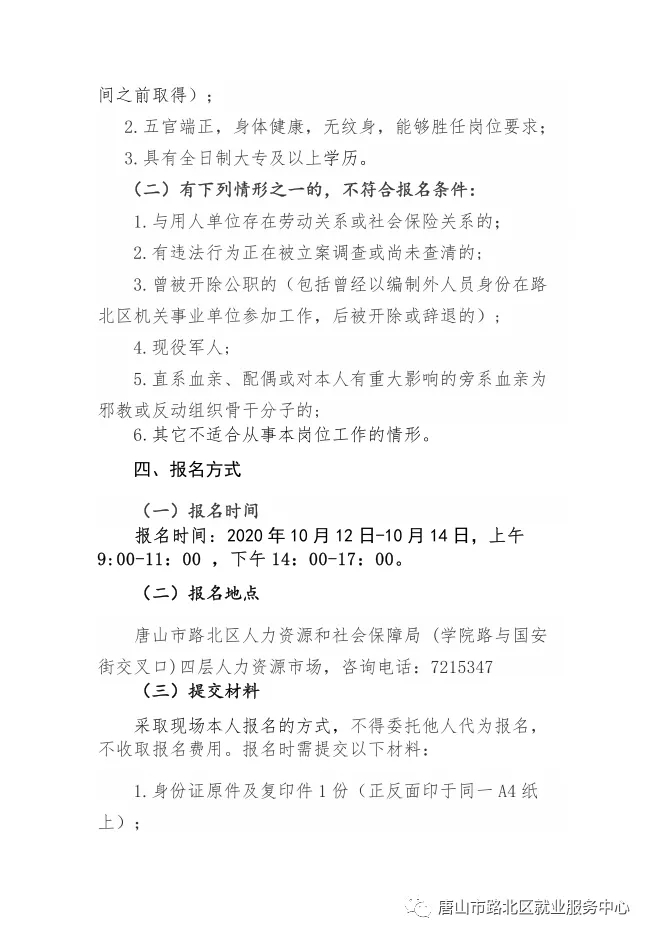 2020年唐山市路北區(qū)面向社會公開招聘部分編制外人員公告
