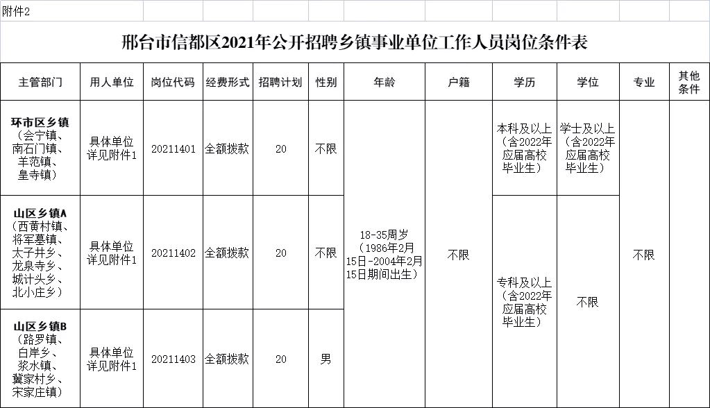 2.《邢臺市信都區(qū)2021年公開招聘鄉(xiāng)鎮(zhèn)事業(yè)單位工作人員崗位條件表》