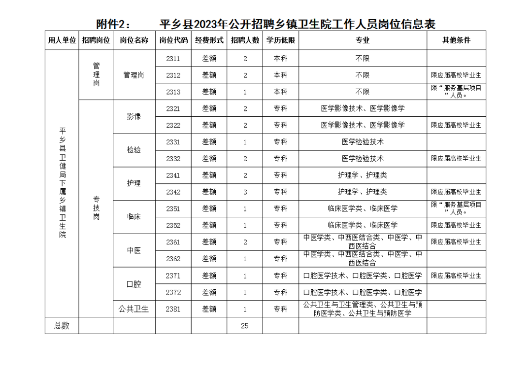 3.具有與招聘崗位要求相適應(yīng)的年齡、學(xué)歷和其他資格條件(詳見附件2:《平鄉(xiāng)縣2023年公開招聘鄉(xiāng)鎮(zhèn)衛(wèi)生院工作人員崗位信息表》),國外留學(xué)生須出具教育部留學(xué)認證中心提供的學(xué)歷學(xué)位認證書;