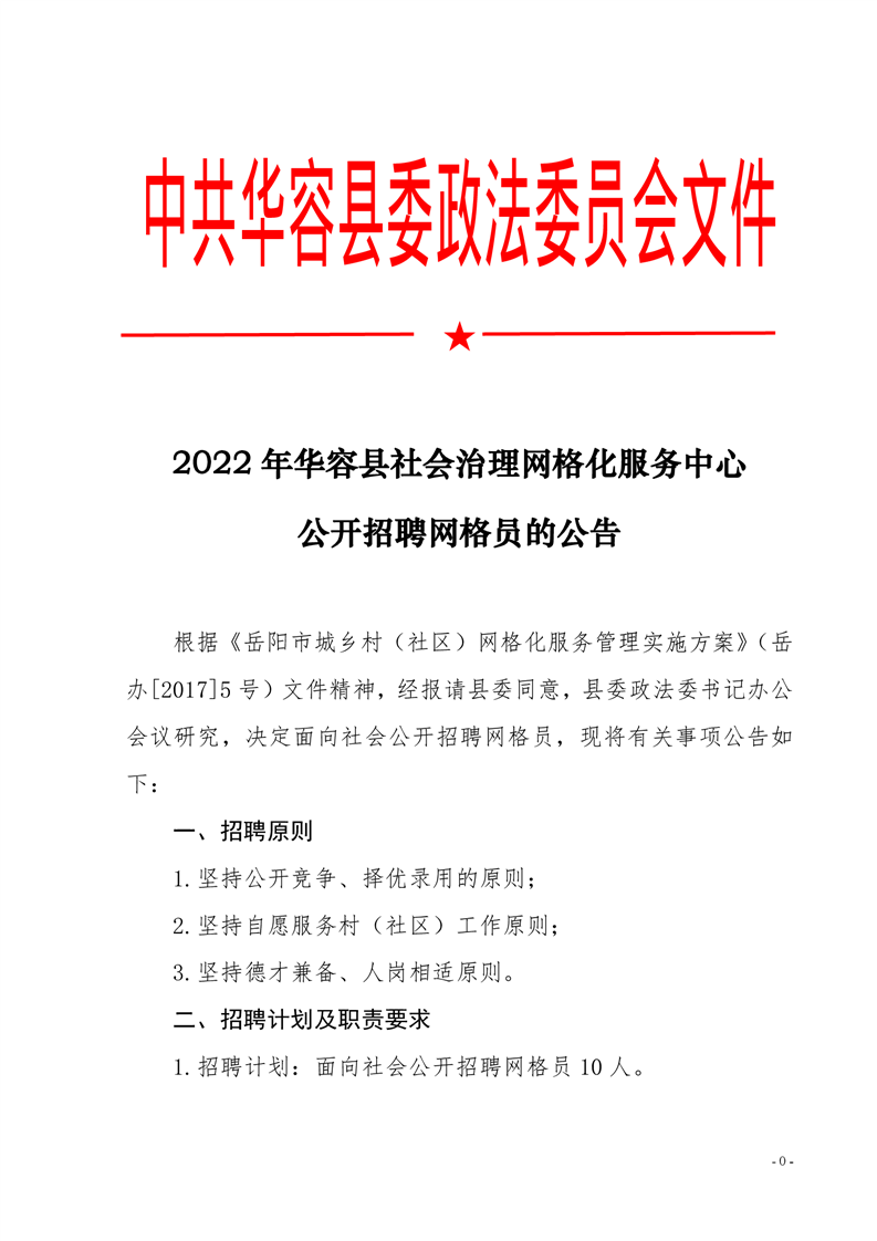 2022年岳陽華容縣社會治理網(wǎng)格化服務(wù)中心公開招聘網(wǎng)格員公告