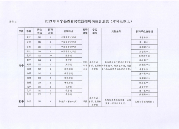 1.2023年阜寧縣教育局校園招聘崗位計(jì)劃表(本科及以上)