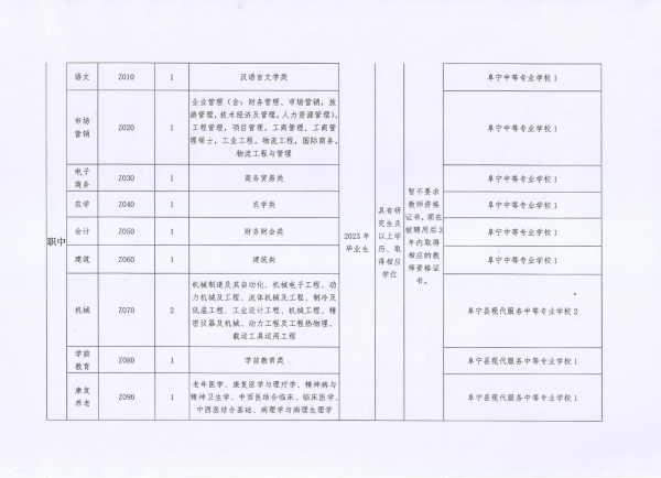 4.應(yīng)聘人員本科或研究生階段所學(xué)專業(yè)須符合招聘崗位的專業(yè)要求(專業(yè)目錄按江蘇省2023年度考試錄用公務(wù)員專業(yè)參考目錄、教育部《普通高等學(xué)校本科專業(yè)目錄(2020年版)》和《授予博士、碩士學(xué)位和培養(yǎng)研究生的學(xué)科、專業(yè)目錄(1998年版)》等執(zhí)行)。并具有相應(yīng)教師資格證書,或持有已參加相應(yīng)教師資格認(rèn)定的證明。報(bào)考職中專業(yè)課教師崗位的,暫不要求教師資格證書,須在被聘用后3年內(nèi)取得相應(yīng)的教師資格證書;