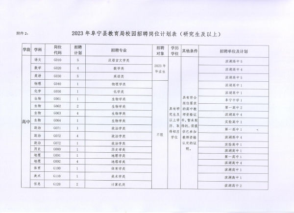 2.2023年阜寧縣教育局校園招聘崗位計(jì)劃表(研究生及以上)