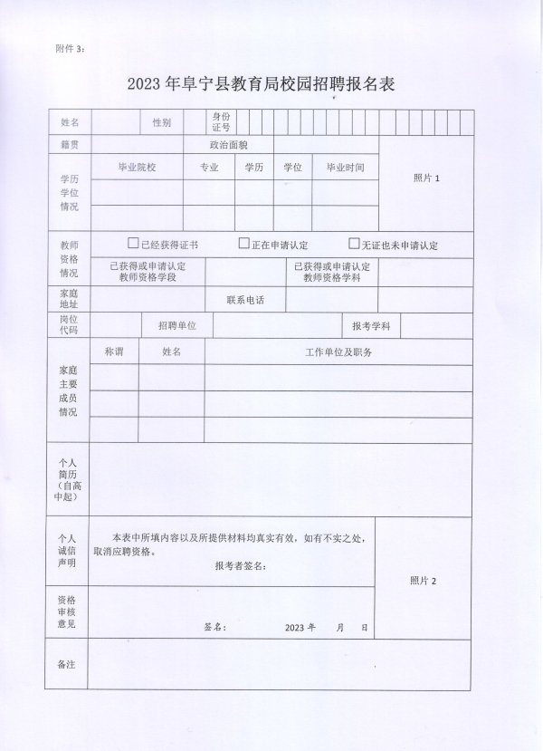 3.2023年阜寧縣教育局校園招聘報(bào)名表