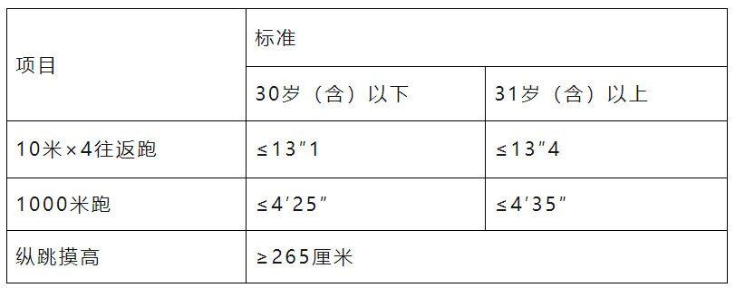 3.體能測(cè)試項(xiàng)目和標(biāo)準(zhǔn):