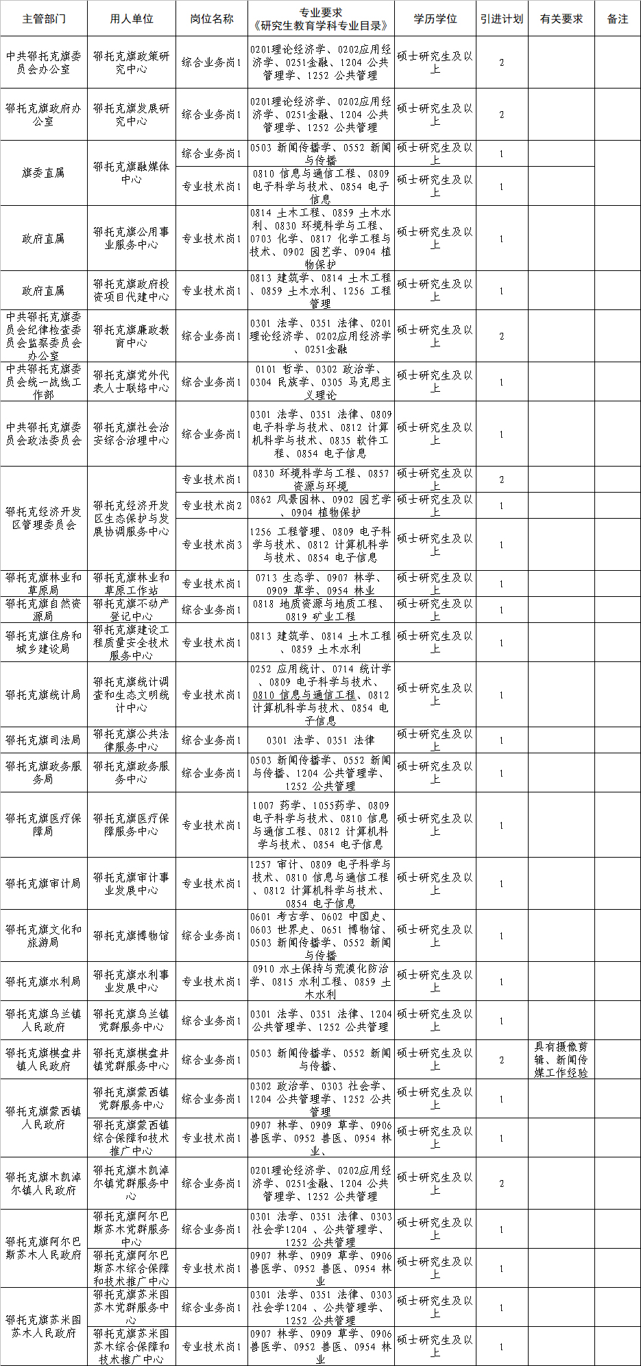 附件:1.鄂托克旗2024年度事業(yè)單位引進(jìn)高層次人才和緊缺專業(yè)人才需求目錄