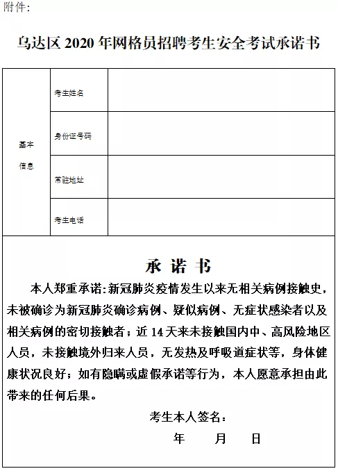 報(bào)名人員必須配戴口罩、接受體溫測(cè)量、進(jìn)行健康碼掃碼、填寫15日內(nèi)無(wú)出國(guó)或無(wú)去疫區(qū)史的保證書。