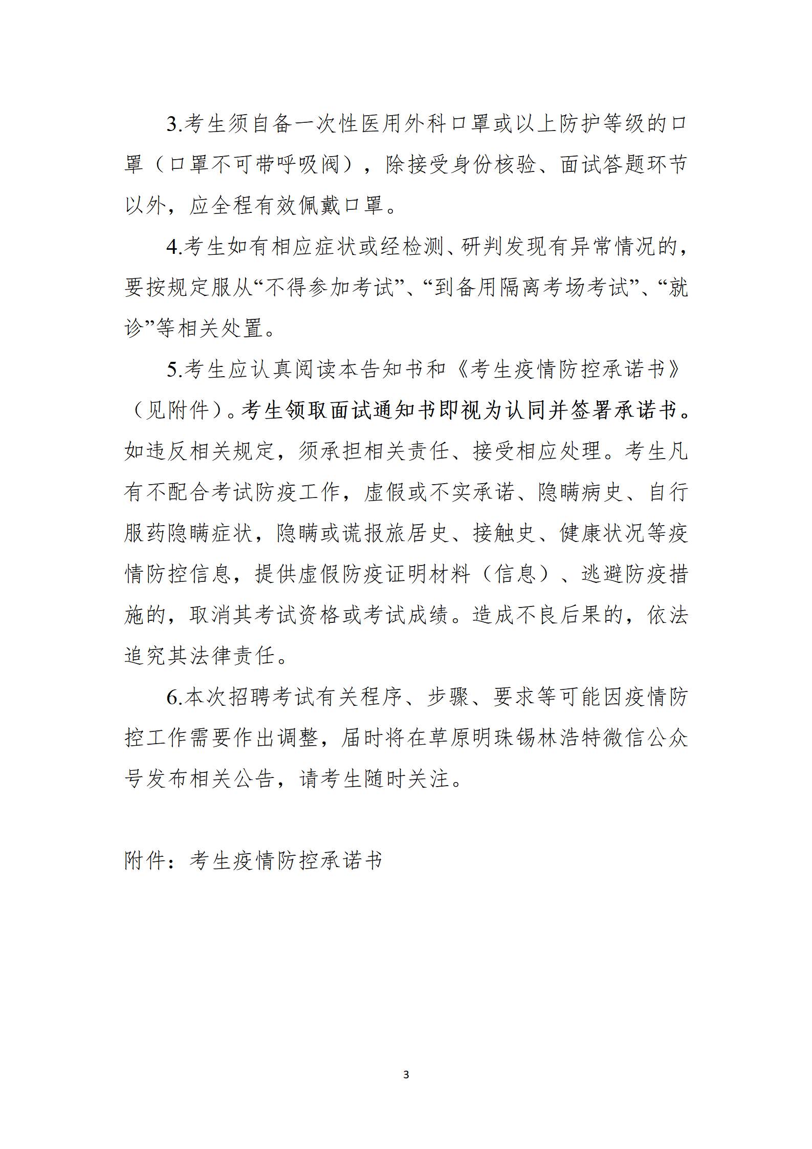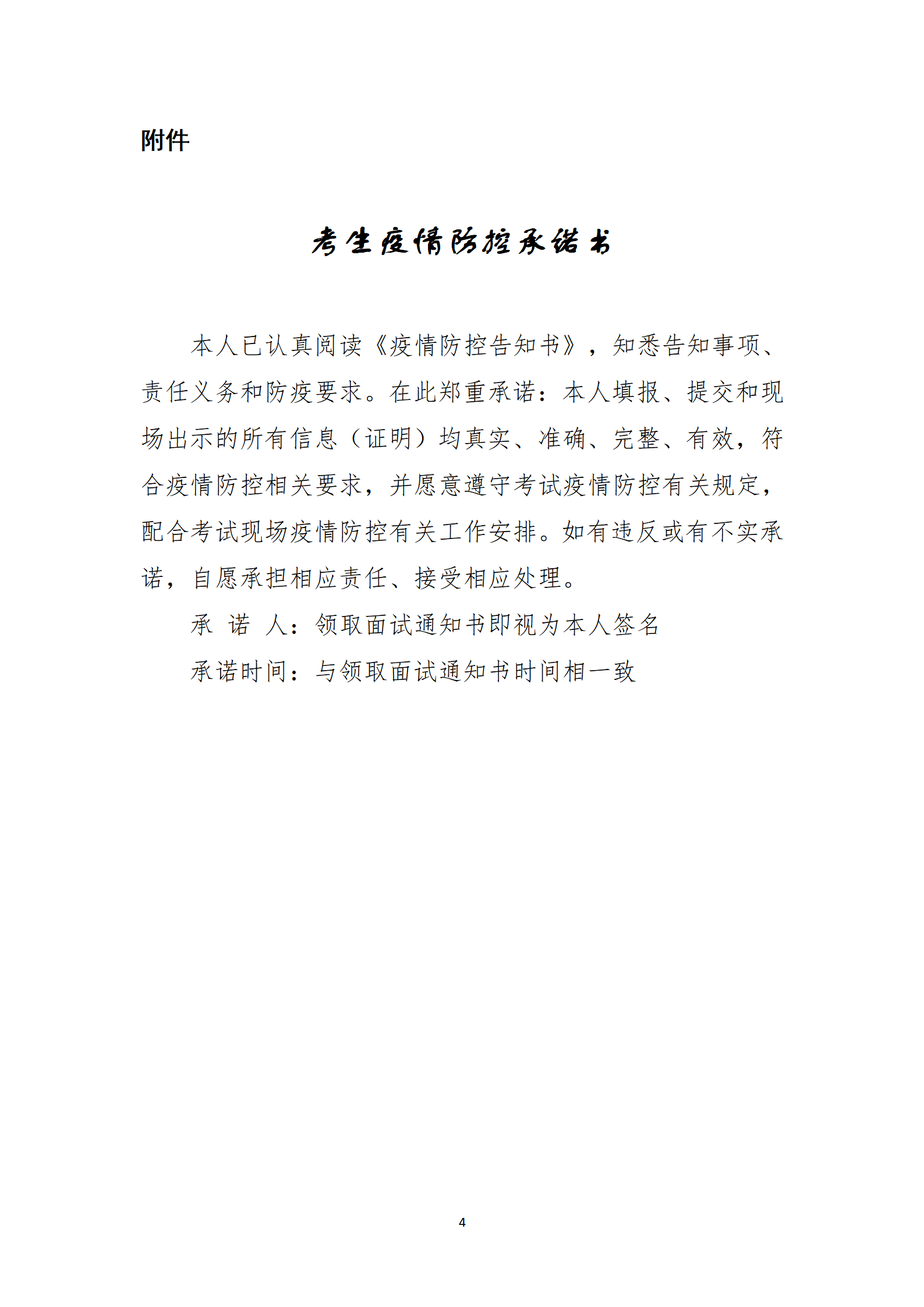 本次招聘考試考試嚴格執(zhí)行《疫情防控告知書》(附件4),并簽訂《考生疫情防控承諾書》。如有違反或有不實承諾,由報考人員承擔相應(yīng)責任、接受相應(yīng)處理。