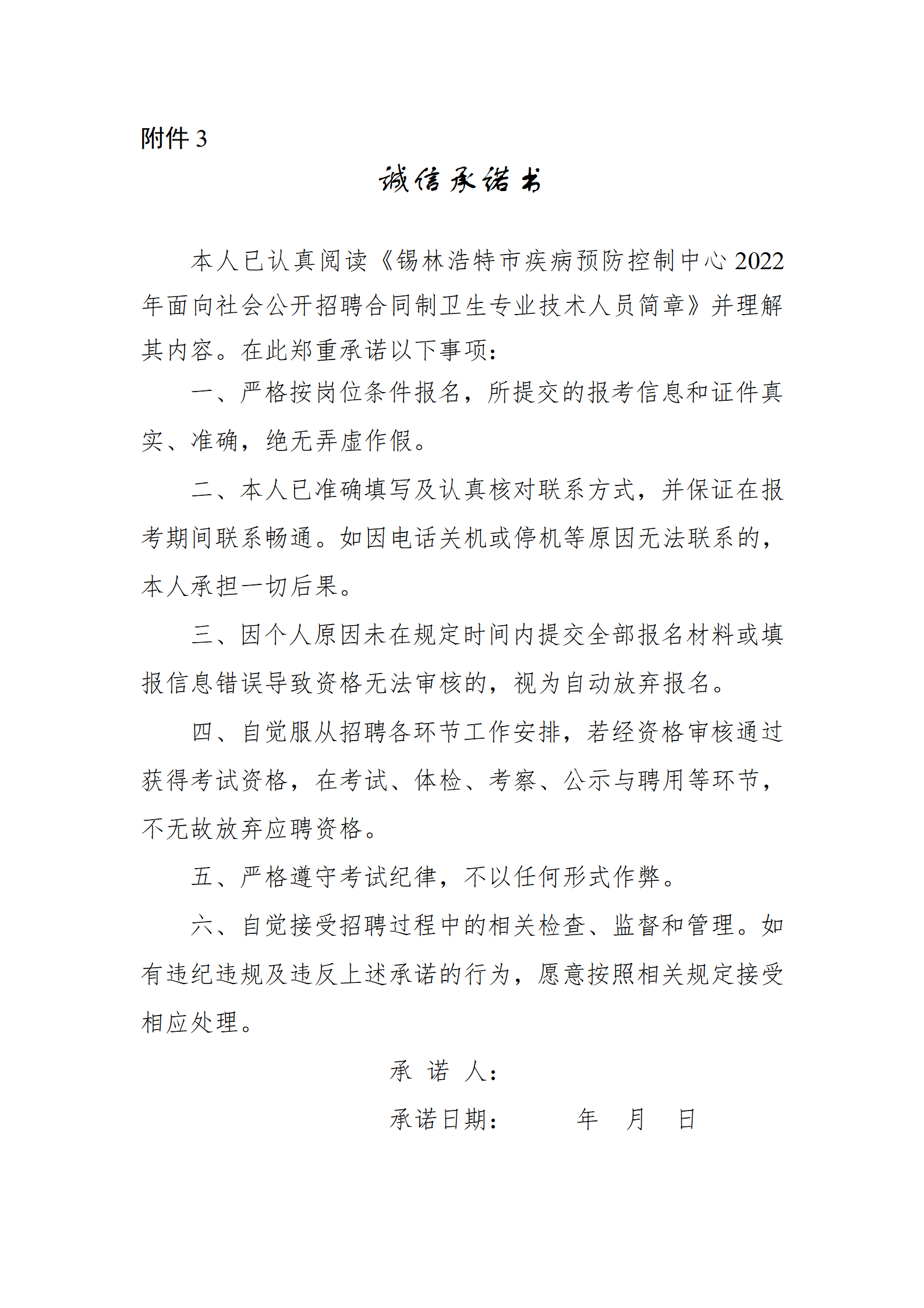 (3)《誠信承諾書》一份(附件3);
