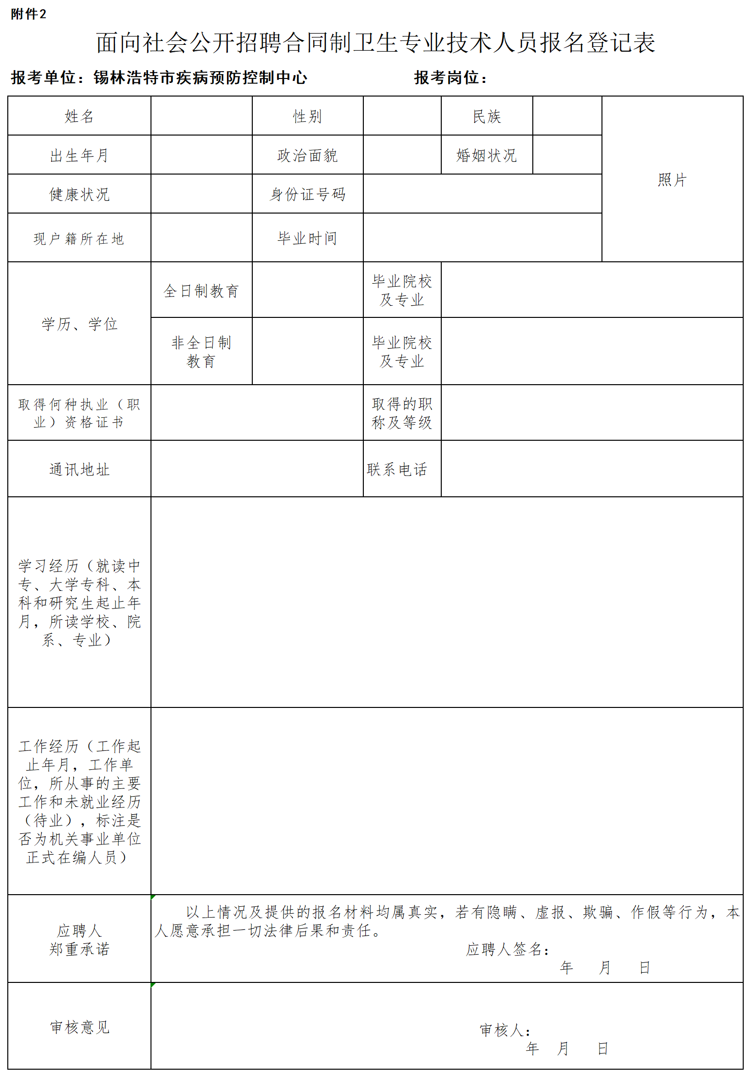 2.面向社會公開招聘合同制衛(wèi)生專業(yè)技術(shù)人員報名登記表