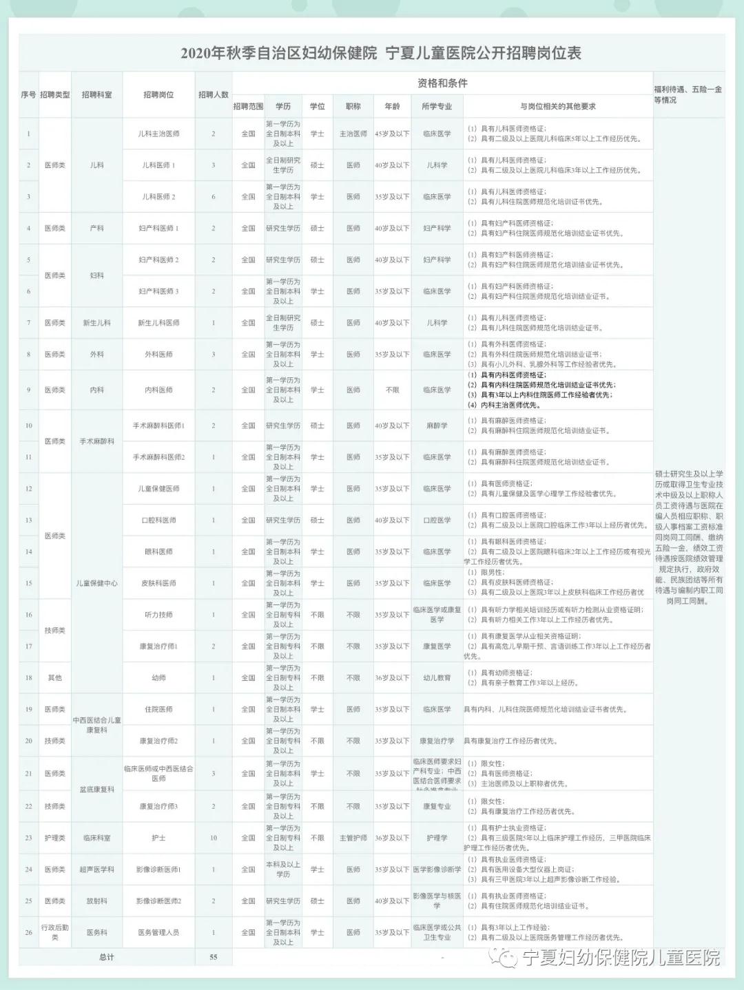 2020年寧夏婦幼保健院、兒童醫(yī)院秋季公開招聘公告