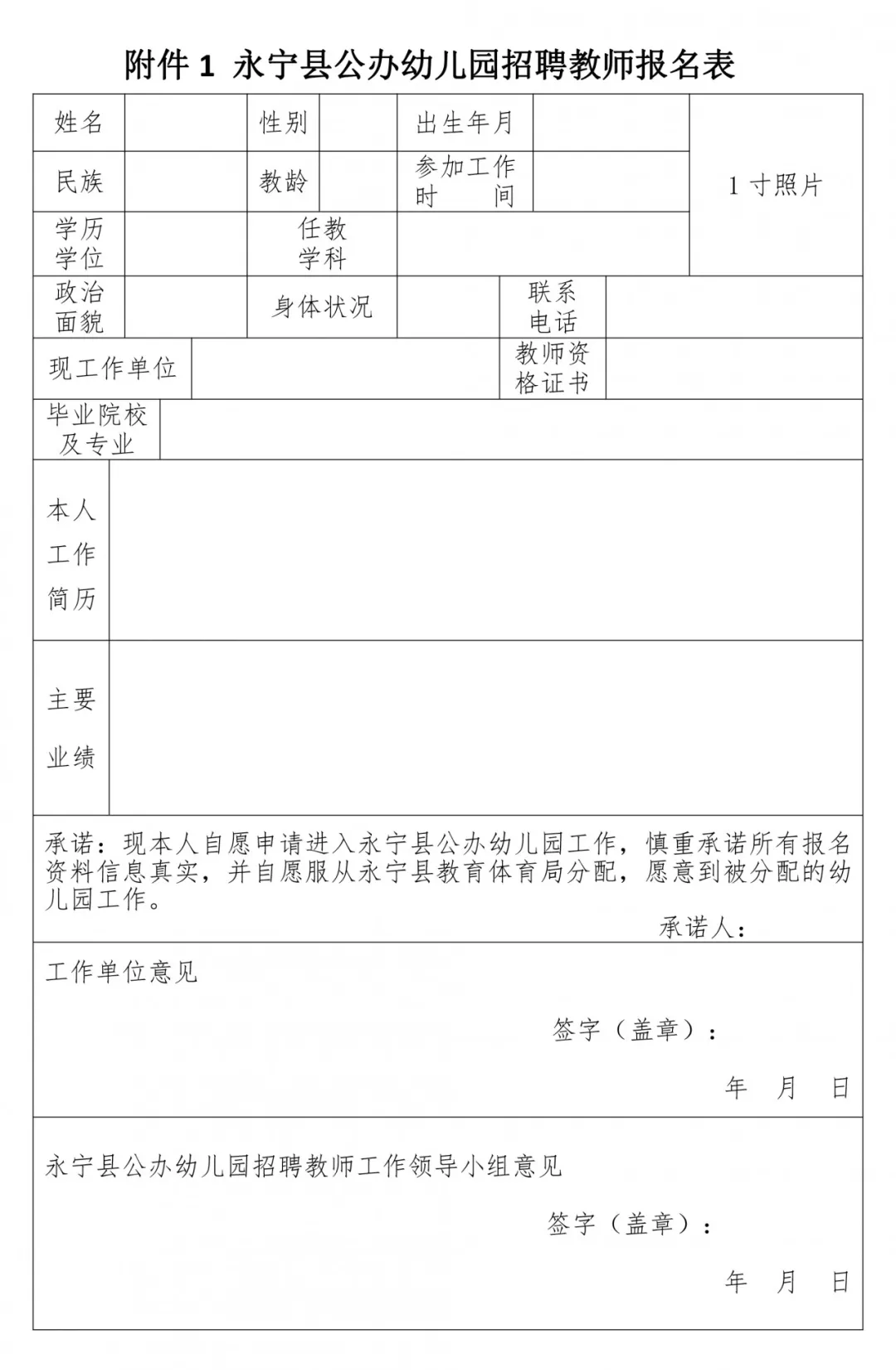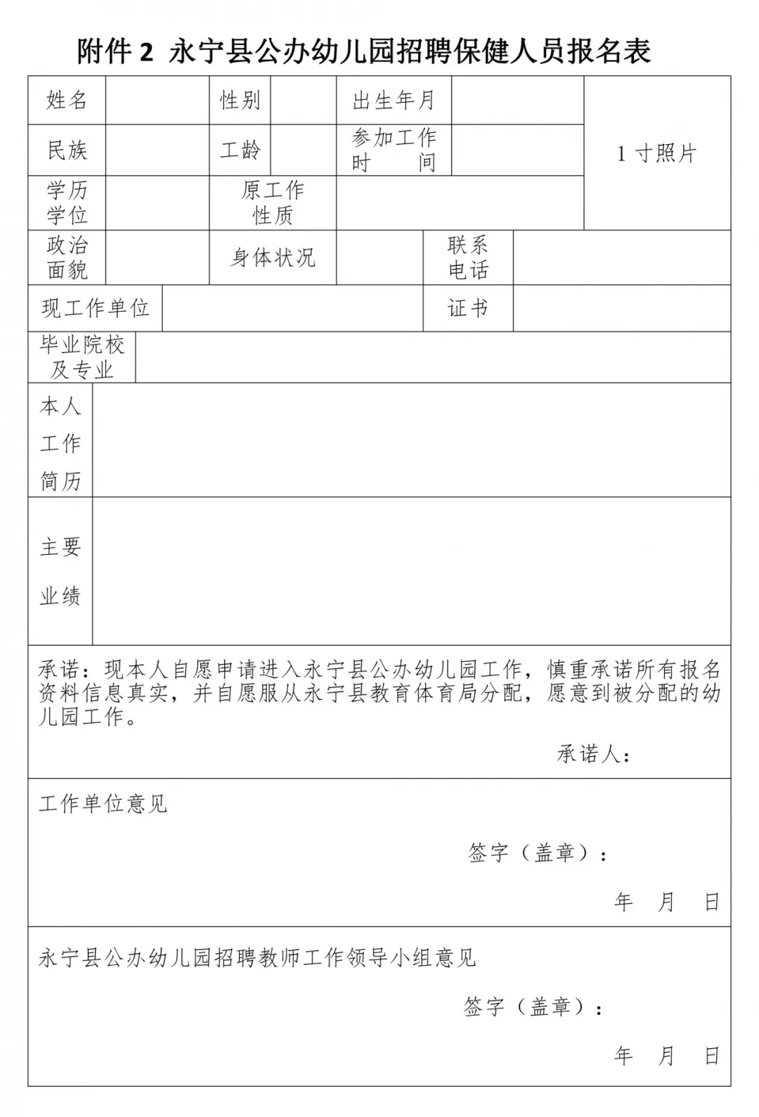 2、應聘者填寫《永寧縣公辦幼兒園招聘教師報名表》(附件1)或《永寧縣公辦幼兒園招聘保健人員報名表》(附件2),并在規(guī)定時間內(nèi)報名。