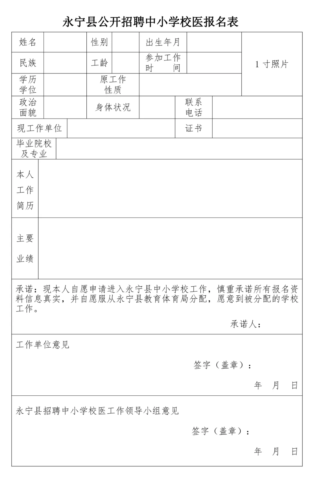 2、應(yīng)聘者填寫《永寧縣教育體育局2020年自主公開招聘中小學(xué)校醫(yī)報(bào)名表》(附件),并在規(guī)定時(shí)間內(nèi)報(bào)名。