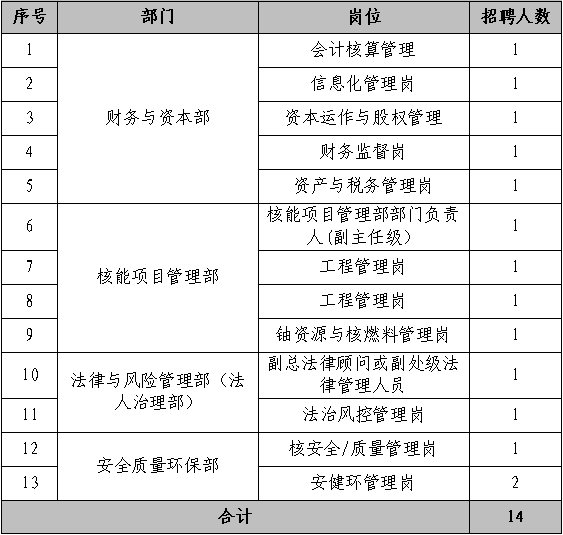 各崗位的任職資格要求詳見國家核電本部人員選聘崗位清單(附件1)。