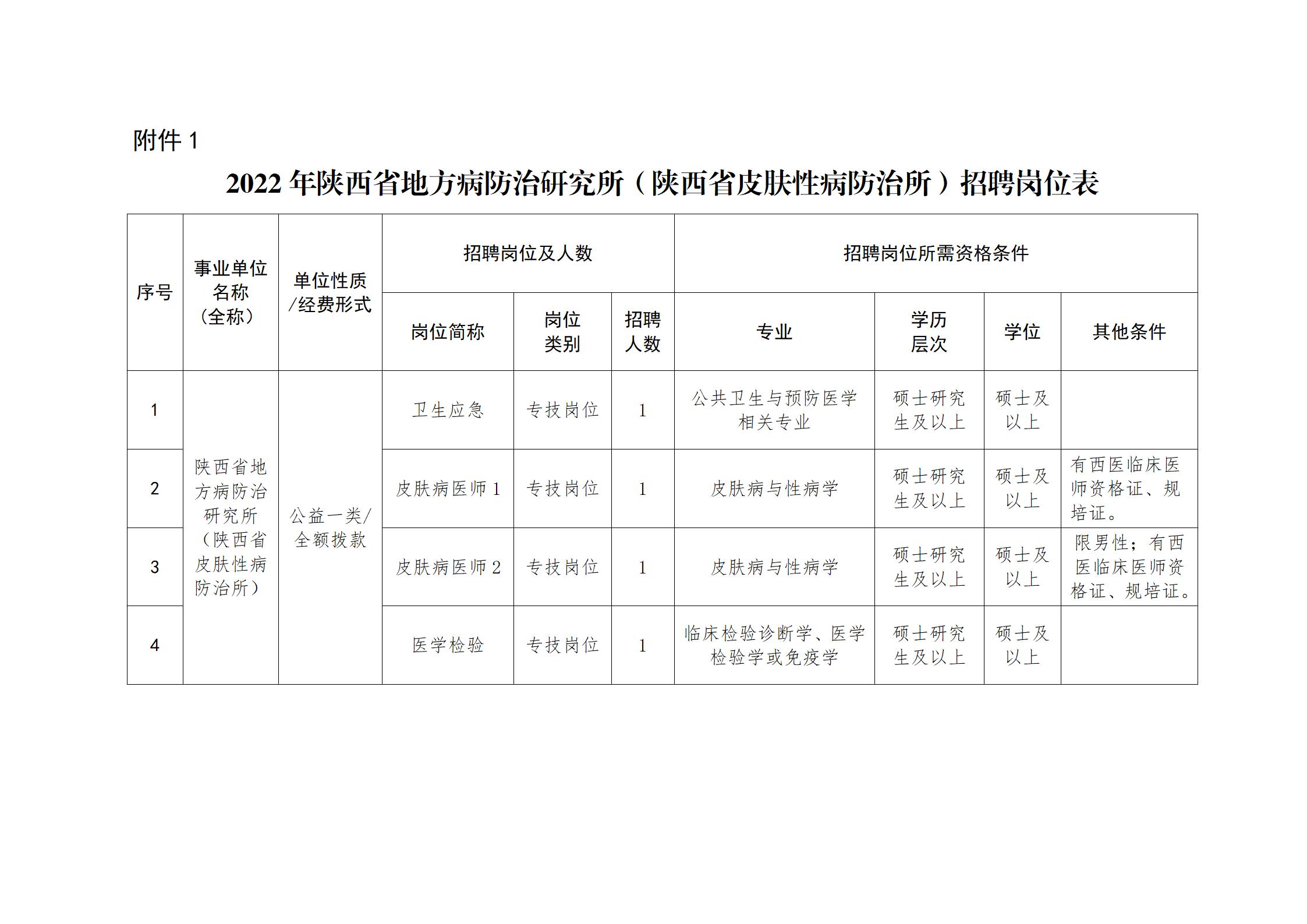 附件1:2022年陜西省地方病防治研究所(陜西省皮膚性病防治所)招聘崗位表