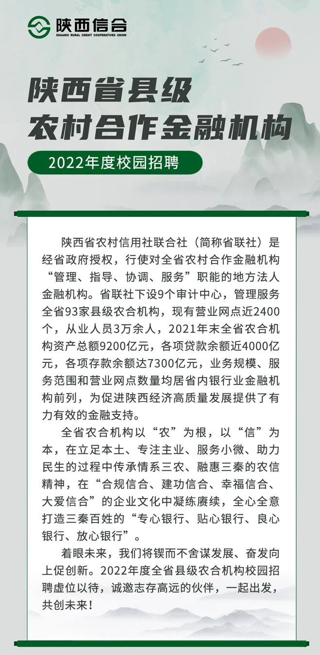 2022年陜西省縣級農(nóng)村合作金融機(jī)構(gòu)校園招聘公告