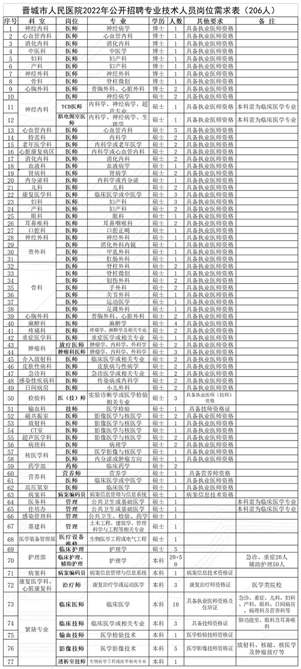 2022年晉城市人民醫(yī)院公開招聘專業(yè)技術(shù)人員公告
