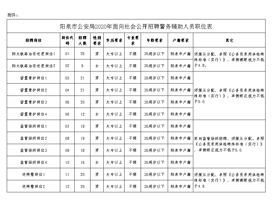 附件:《陽泉市公安局2020年面向社會公開招聘警務輔助人員職位表》
