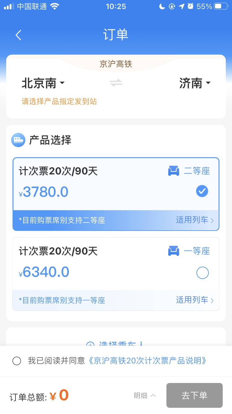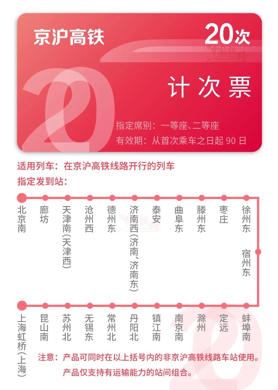 另外京滬高鐵沿線的一些區(qū)間站也可以購(gòu)買,比如北京南站到濟(jì)南站,二等座計(jì)次票 20 次 / 90 天售價(jià) 3780 元,平均每次票價(jià)為 189 元;一等座計(jì)次票 20 次 / 90 天售價(jià) 6340 元,平均每次票價(jià)為 317 元。