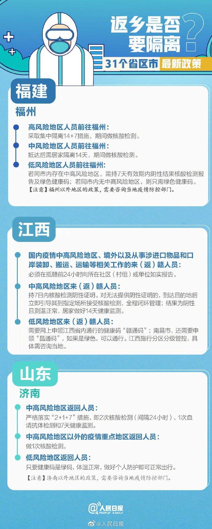 中、高風(fēng)險地區(qū)人員倡議不返鄉(xiāng),若返鄉(xiāng)需要定點集中隔離14日;低風(fēng)險地區(qū)人員來福州只需要提供健康碼綠碼。