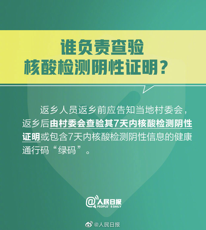 返鄉(xiāng)人員返鄉(xiāng)前應告知當?shù)卮逦瘯?,返鄉(xiāng)后由村委會查驗其7天內核酸檢測陰性證明或包含7天內核酸檢測陰性信息的健康通行碼“綠碼”。