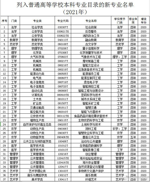 2.列入普通高等學校本科專業(yè)目錄的新專業(yè)名單(2021年)