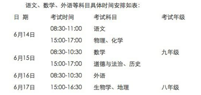 安徽省中考實驗操作為理化生三科(附考試時間表)