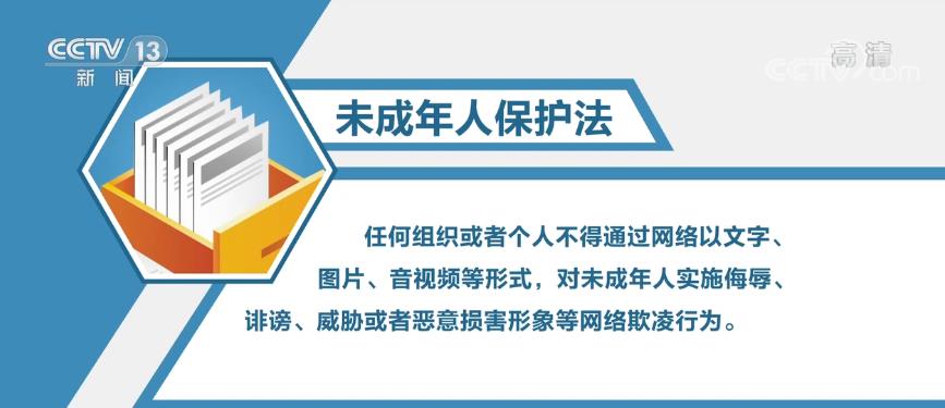 新修訂的未成年人保護(hù)法規(guī)定:任何組織或者個(gè)人不得通過網(wǎng)絡(luò)以文字、圖片、音視頻等形式,對(duì)未成年人實(shí)施侮辱、誹謗、威脅或者惡意損害形象等網(wǎng)絡(luò)欺凌行為。