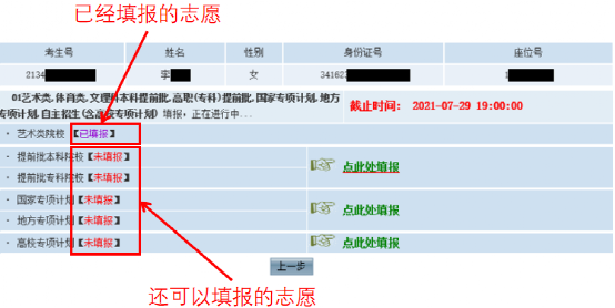 下圖以藝術(shù)類(lèi)考生填報(bào)為例(志愿數(shù)量?jī)H為示例):