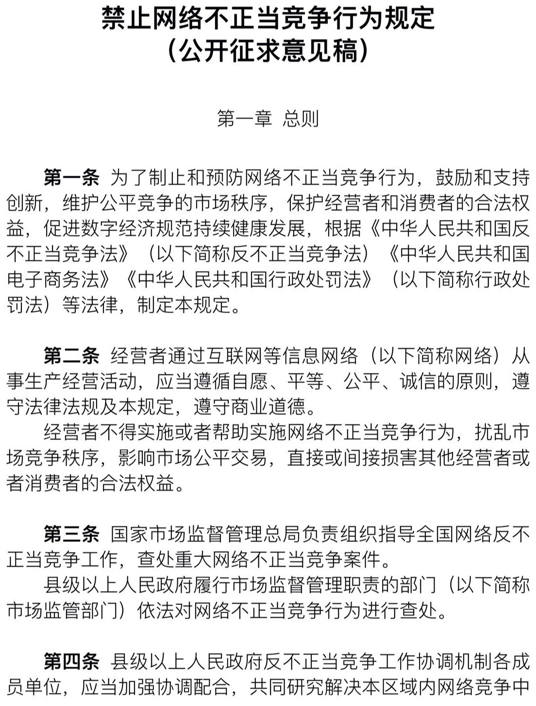 國家市場監(jiān)督管理總局就《禁止網(wǎng)絡(luò)不正當(dāng)競爭行為規(guī)定》征求意見