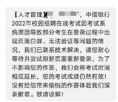 中信銀行校招筆試系統(tǒng)崩了上熱搜,網(wǎng)友曬出北森致歉