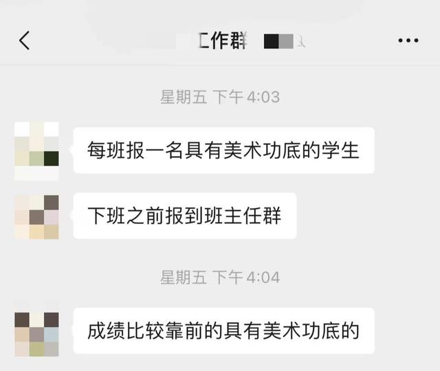 李莉還表示,11月中旬的期中考試結(jié)束后,高姓校長還開會(huì)通知各年級(jí)老師,從每班學(xué)習(xí)成績靠前的學(xué)生里推薦出有美術(shù)功底的學(xué)生報(bào)給學(xué)校,“前不久學(xué)校還專門對(duì)報(bào)上來的學(xué)生進(jìn)行了美術(shù)類的測驗(yàn),據(jù)說是推薦他們?nèi)タ记迦A美術(shù)學(xué)院。”但選出來的學(xué)生要如何學(xué)習(xí),李莉表示學(xué)校還未通知,具體情況還不知情。