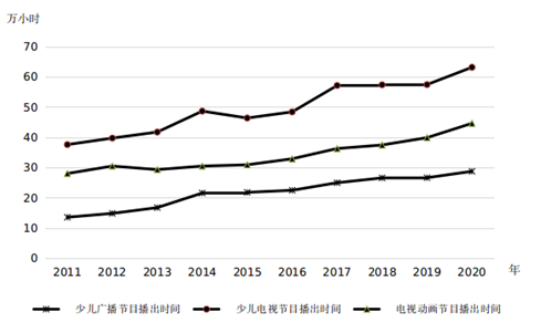 圖8 2011—2020年少兒廣播節(jié)目、少兒電視節(jié)目、電視動(dòng)畫節(jié)目播出時(shí)間