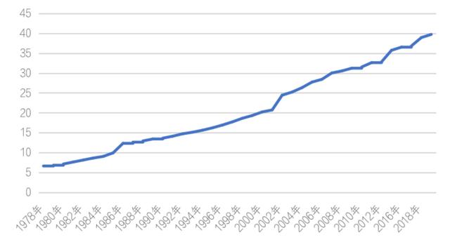 圖:城鎮(zhèn)人均居住建筑面積變化情況(平方米)