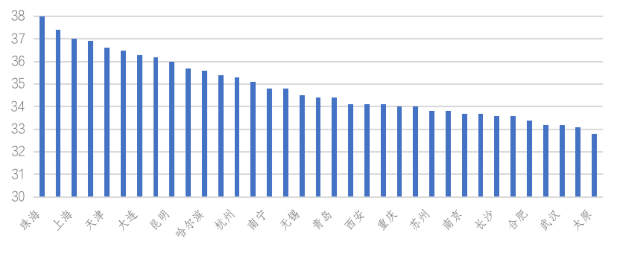 圖:2021年35城置業(yè)平均年齡分布情況(歲)